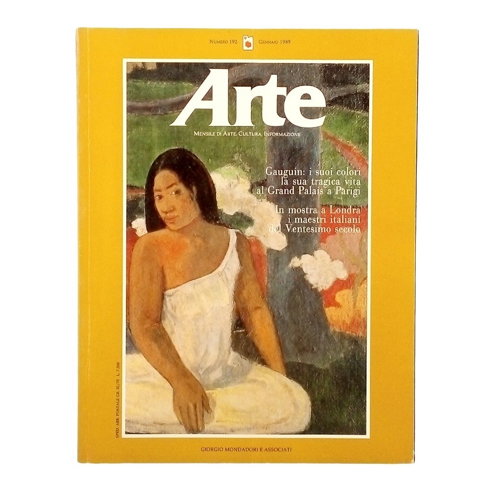 Rivista Arte Mensile di Arte Cultura Informazioni n 192 gennaio 1989 Mondadori e Associati Rubriche Gauguin i msuoi colori la sua tragica vita al Grand Palais a Parigi-In mostra a Londra i maestri italiani del Ventesimo secolo Buone condizioni leggeri segni di usura