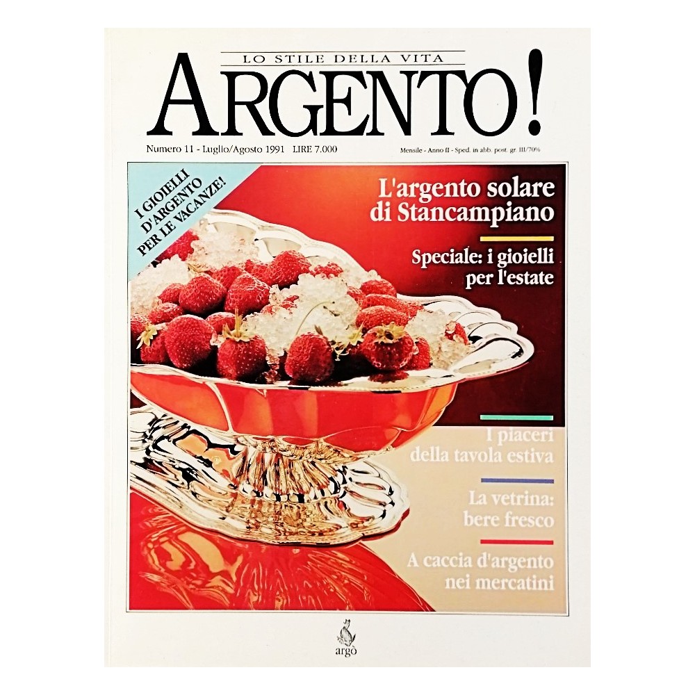 Rivista Argento Lo stile di vita n 11 luglio/agosto 1991 Editoriale Argo