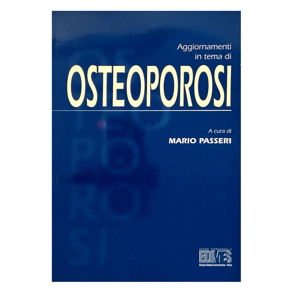 "Mario Passeri Aggiornamenti in tema di Osteoporosi EDIMES 2000": Si tratta di un testo di aggiornamento sull'osteoporosi, curato da Mario Passeri e pubblicato da EDIMES nel 2000. Il libro raccoglie i contributi di diversi esperti del settore e offre una panoramica completa e aggiornata sulle conoscenze scientifiche e cliniche relative all'osteoporosi. I principali temi trattati nel libro includono: Epidemiologia e fattori di rischio dell'osteoporosi Fisiopatologia dell'osso Diagnosi dell'osteoporosi (MOC, markers biochimici) Prevenzione dell'osteoporosi (dieta, esercizio fisico, farmaci) Terapia dell'osteoporosi (farmaci antiriassorbitivi, farmaci anabolici) Osteoporosi secondaria Osteoporosi maschile