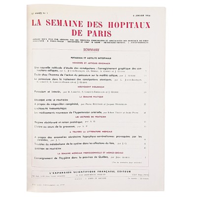 Histoire Médecine La Semaine des Hopitaux de Paris T 1 janvier-mars L'Expansion Scientifique 1956