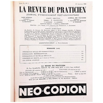 Histoire Médecine La Revue du Praticien Tome X 1 janvier - juin L'Expansion Editeur 1960