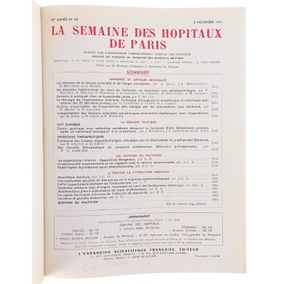 La Semaine des Hopitaux de Paris tome 4 novembre-decembre L'Expansion Scientifique 1961