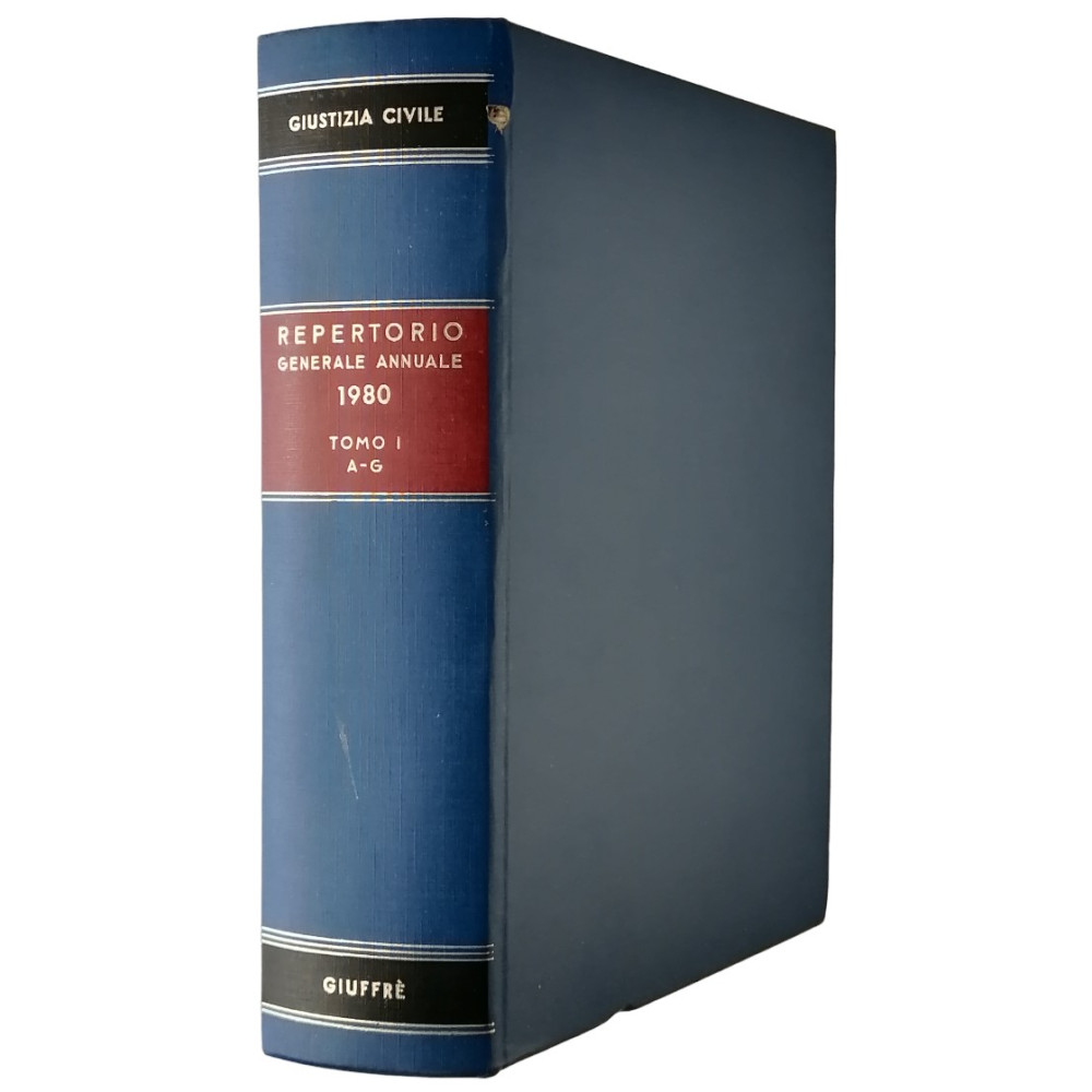 Giustizia Civile Repertorio Generale Annuale di Legislazione -Bibliografia -Giurisprudenza A cura di Angelo Jannuzzi Collaboratori Maria Raffaelle Jannuzzi-Paola Jannuzzi-Marina Moleti-Alfonso Quaranta-Giorgio Stella Richter--Paolo Zappanico 1980 Tomo I A-G Giuffre Editore 1981 Copertina rigida cartonata pagine 1553 Buone condizioni generali leggeri segni di usura e del tempo