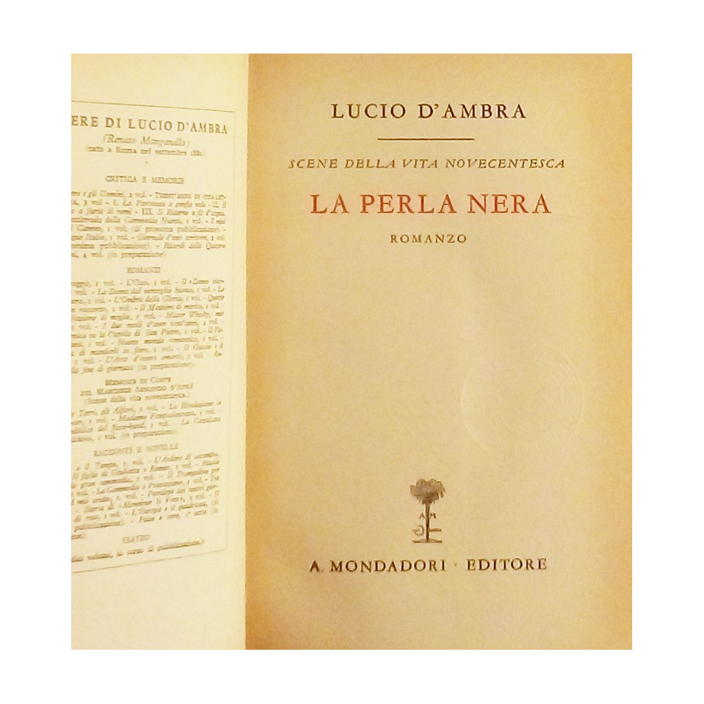 Lucio D'Ambra La perla nera Arnoldo Mondadori Editore 1933 Rilegato copertina rigida cartonata pagine 260 Buone condizioni leggeri segni di usura e del tempo pagine ingiallite