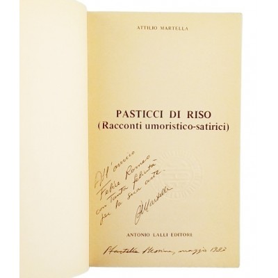 Attilio Martella Pasticci di riso Racconti umoristici satirici Antonio Lalli Editore 1979 Copertina morbida in cartoncino pagine 121 Buone condizioni leggeri segni di usura e del tempo Nel frontespizio dedica dell autore a un lettore