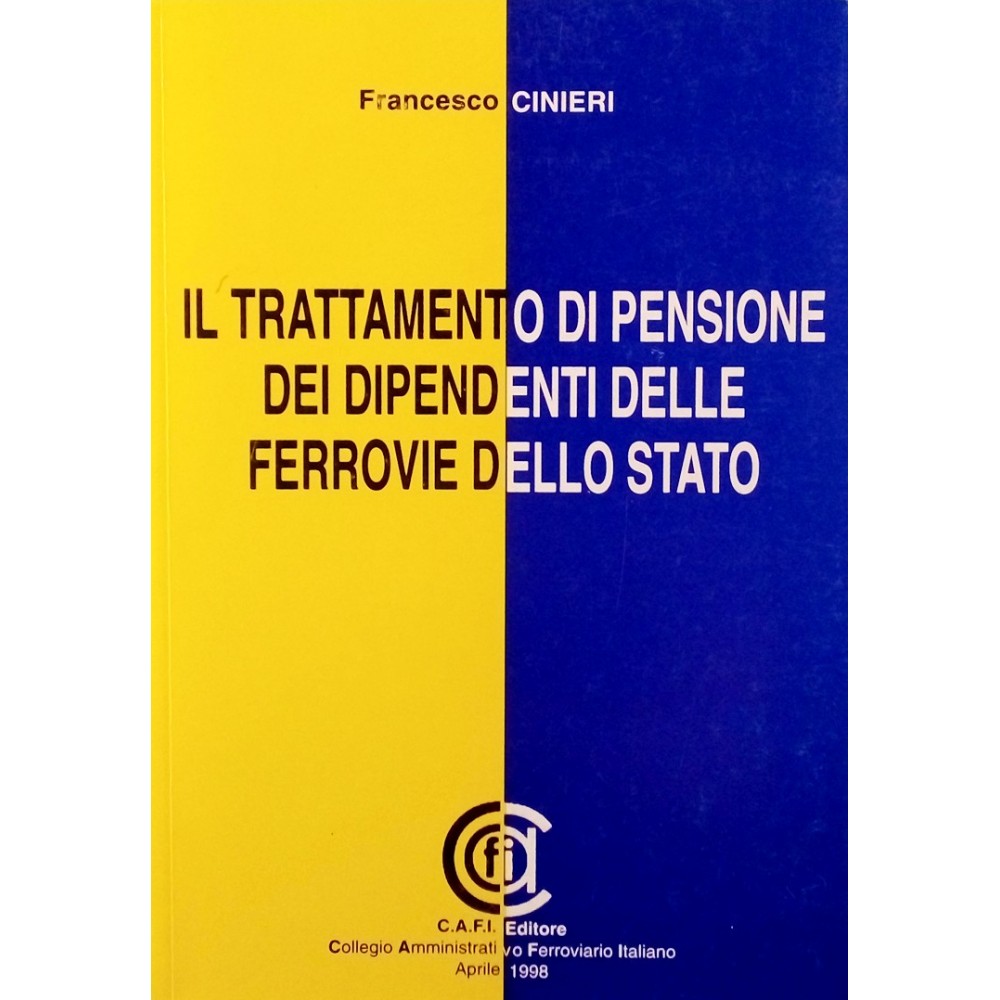 Francesco Cinieri Il Trattamento di Pensione dei Dipendenti delle Ferrovie dello Stato CAFI Editore aprile 1998 Copertina morbida in cartoncino illustrata pag 317 Buone condizioni