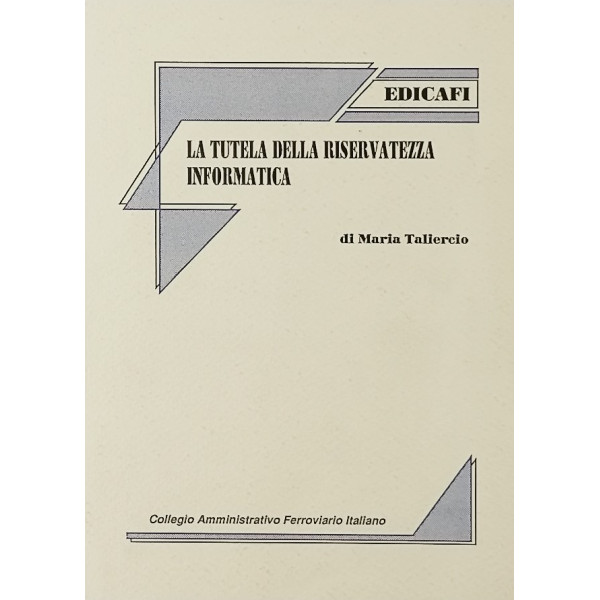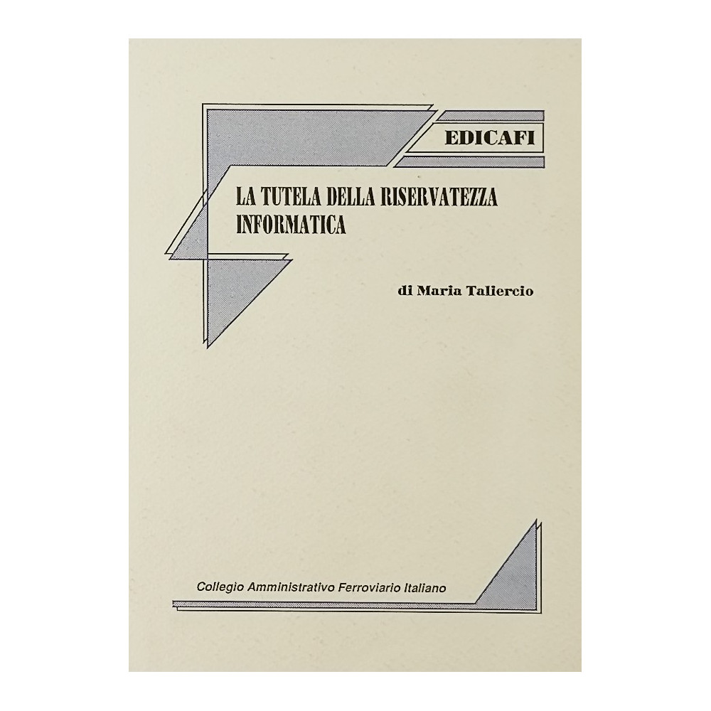 Maria Taliercio La tutela della riservatezza Collegio Amministrativo Ferroviario Italiano informatica Edicafi 1990 Supplemento al n 12 di Ferrovia e Trasporti Copertina morbida in cartoncino illustrata pagine 214 Buone condizioni leggeri segni di usura