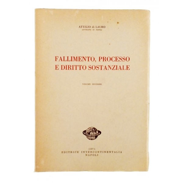 Attilio Di Lauro Fallimento Processo e Diritto Sostanziale volume II Editrice Intercontinentalia Napoli 1971 Copertina morbida in cartoncino chiaro con titoli in rosso e nero pagine da 830 a pagina 1645 Buone condizioni segni di usura e del tempo