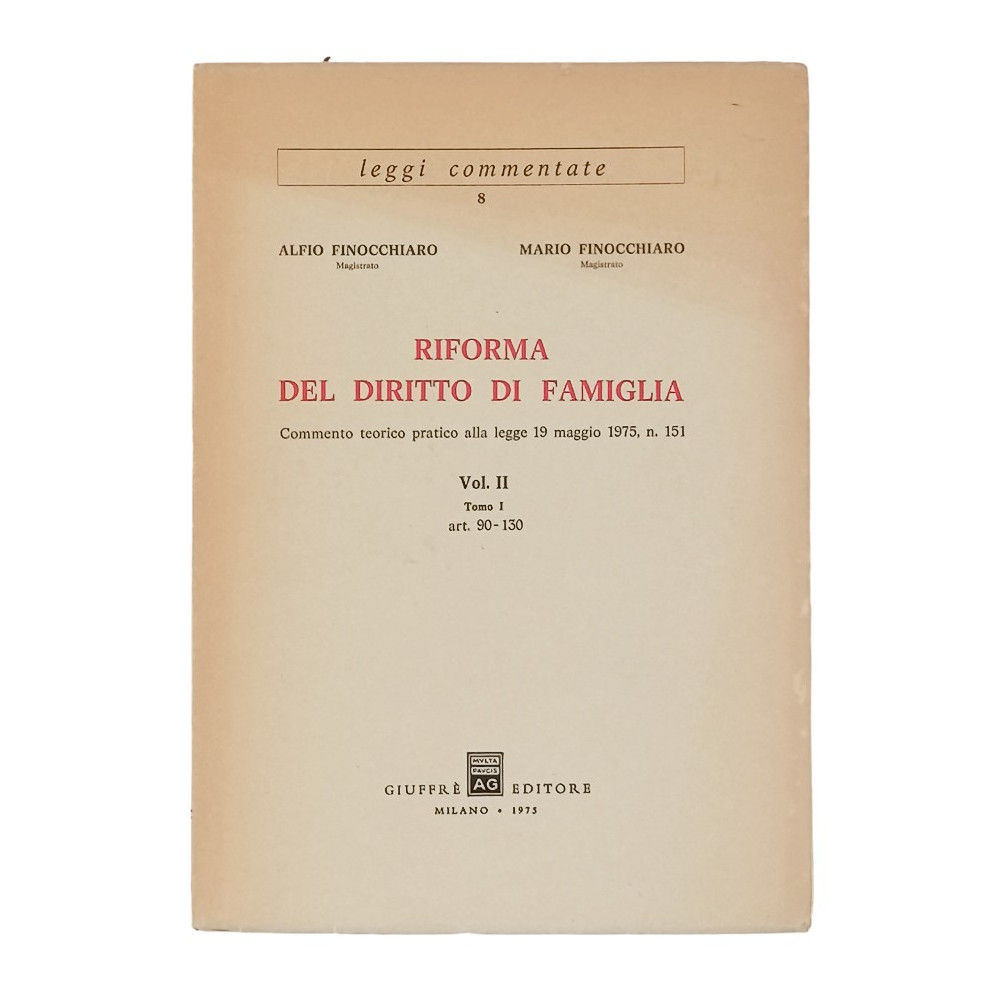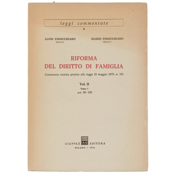 Alfio e Mario Finocchiaro Riforma del Diritto di Famiglia volume II tomo I 1975 articoli 90 - 130 Giuffrè Editore 1975 - Copertina morbida in cartoncino pagine 430 Buone condizioni leggerissimi segni di usura e del tempo