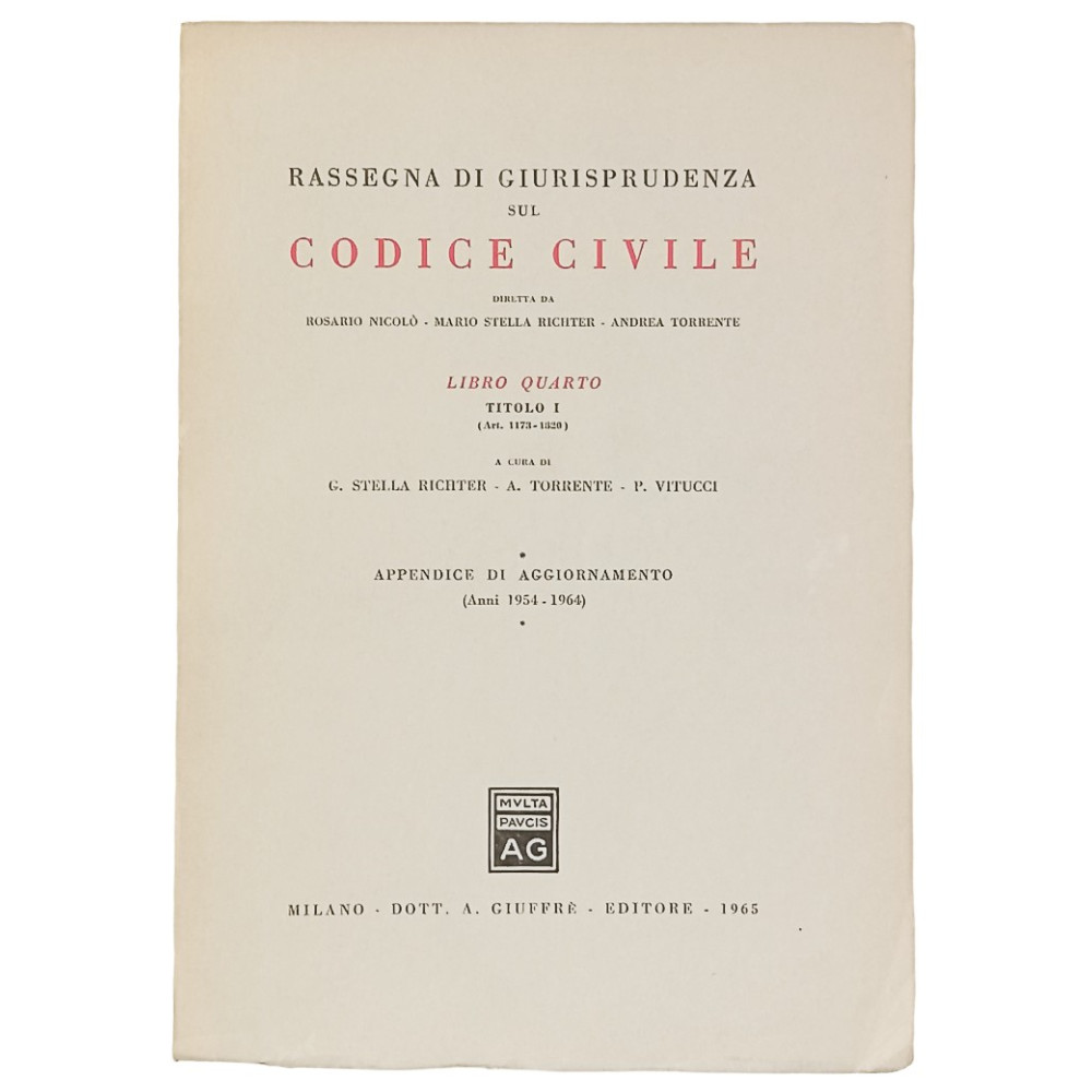 Rassegna di Giurisprudenza sul Codice Civile Libro Quarto Titolo I art 1173 - 1329 Giuffrè Editore 1965 - Copertina morbida in cartoncino pagine 403 Buone condizioni leggerissimi segni di usura e del tempo