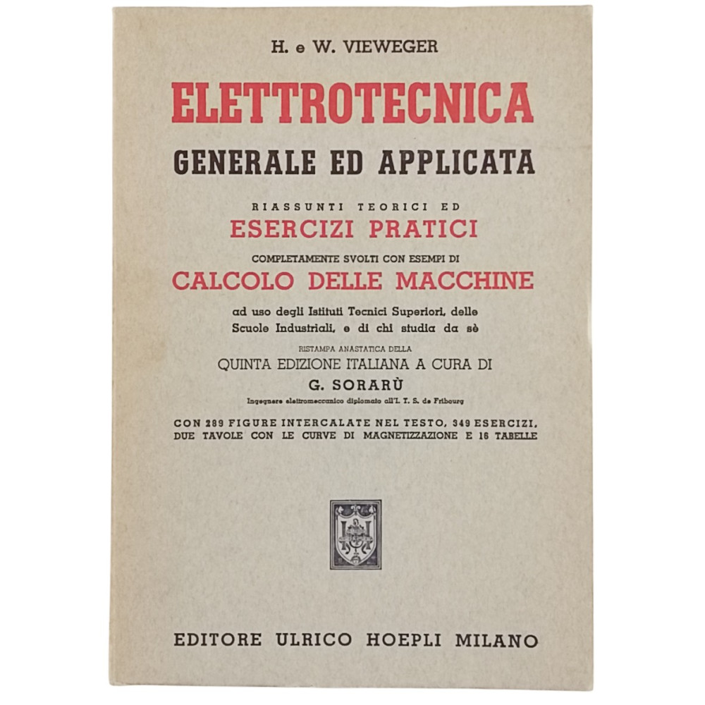 H e W Vieweger Elettrotecnica Ulrico Hoepli 1965 - Copertina morbida in cartoncino pagine 407 Buone condizioni generali leggeri segni di usura e del tempo