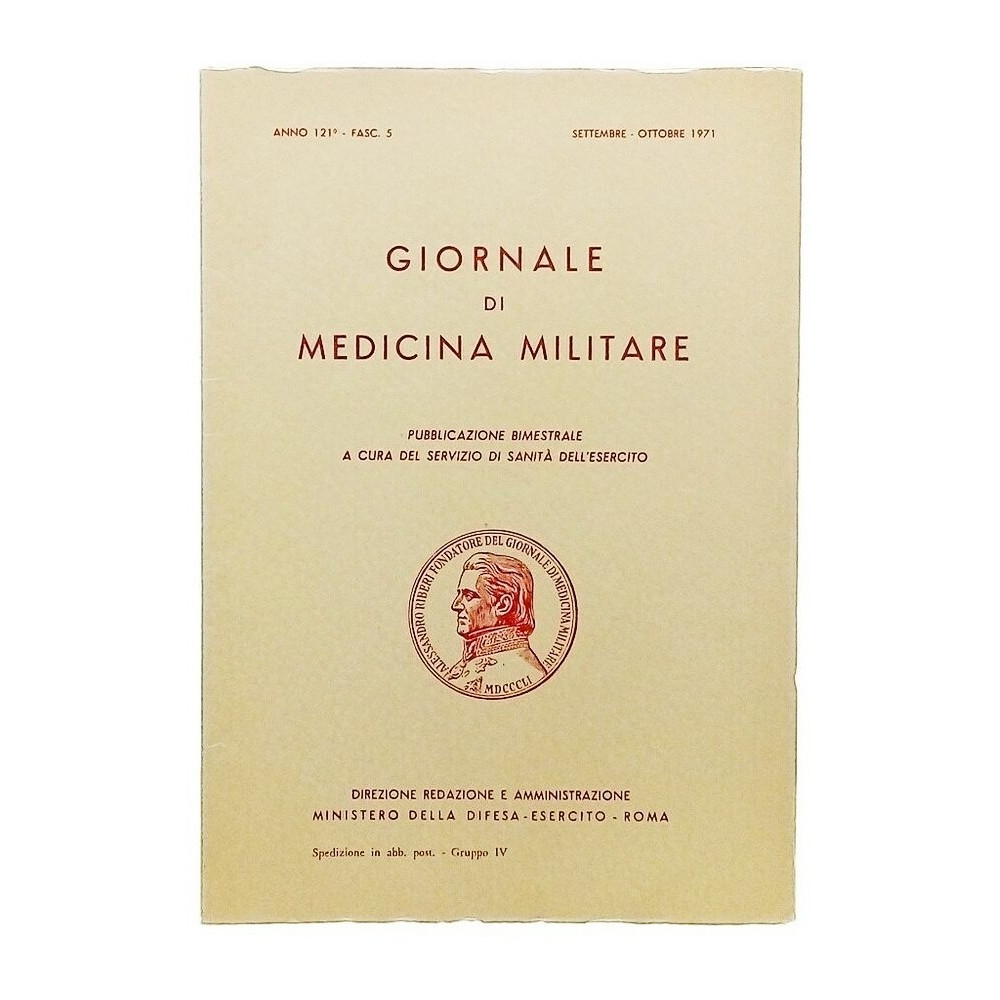 - Argomenti trattati: Medicina militare, sanità militare, chirurgia, psichiatria, igiene, epidemiologia, storia della medicina militare. Il Giornale di Medicina Militare è una pubblicazione storica del Servizio di Sanità dell'Esercito Italiano, fondata nel 1851. La rivista ha lo scopo di promuovere e diffondere le conoscenze scientifiche nel campo della medicina militare, con particolare attenzione alle problematiche sanitarie connesse all'attività delle Forze Armate. Il fascicolo n. 5 del 1971, come gli altri numeri della rivista, contiene articoli scientifici originali, recensioni di libri e riviste, sommari di riviste medico-militari straniere, notizie tecnico-scientifiche e informazioni sulle attività del Servizio di Sanità dell'Esercito. Gli articoli presenti in questo fascicolo trattano diverse tematiche, tra cui: