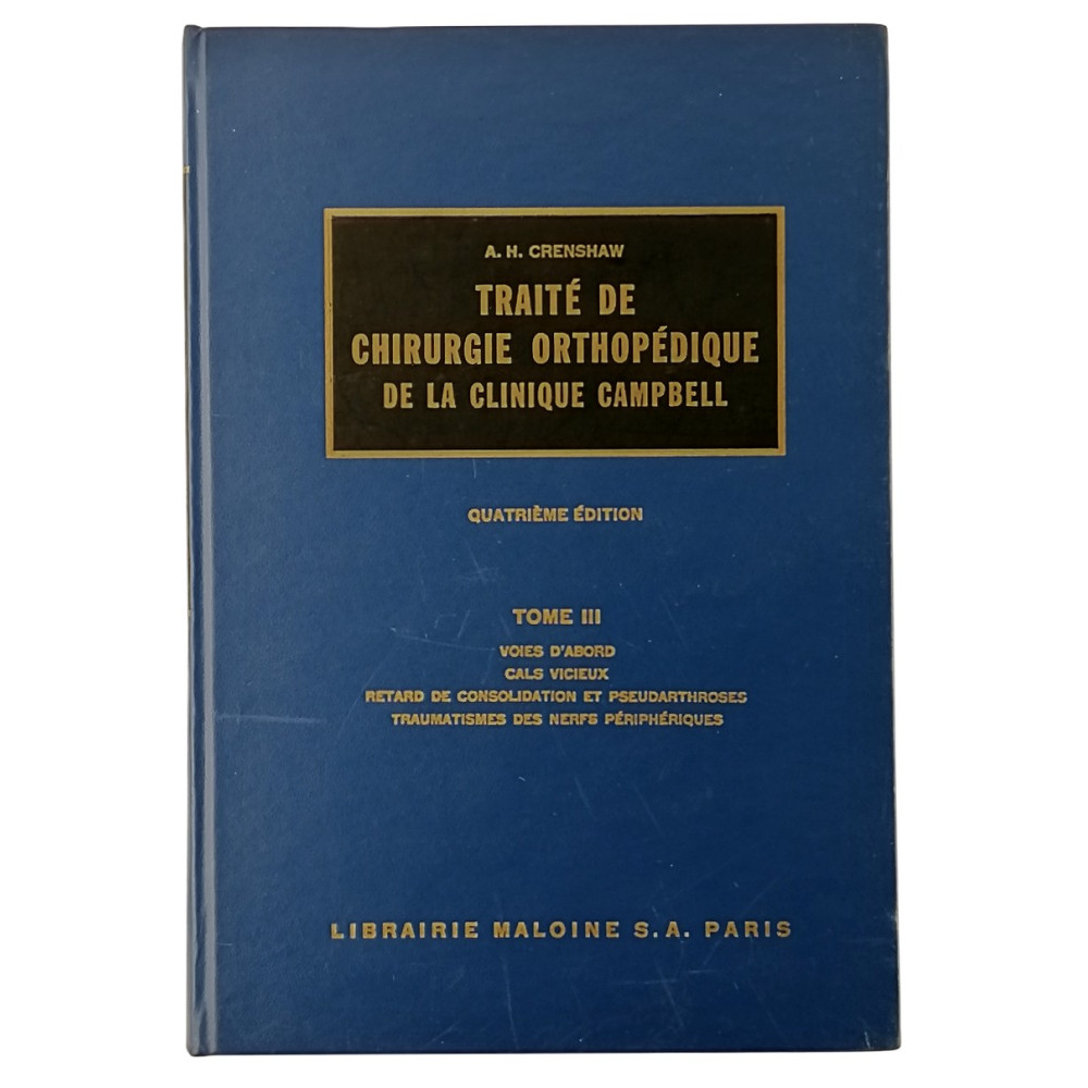 A.H.Crenshaw Traitede Chirurgie Orthopedique de la Clinique Campbell Tome III Voies D'abord Cals Vicieux Retard de Consolidation et Pseudarthroses Traumatismes des Nerfs Pèripèriques 1965 Librairie Maloine Rilegato copertina rigida cartonata pagine da 538 a pagina 814 con 1535 illustrazioni e 9 a colori Buone condizioni leggerissimi segni di usura e del tempo