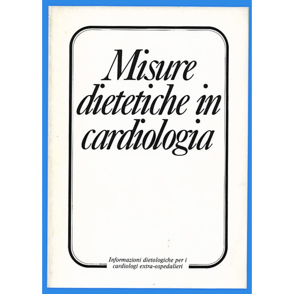 Misure Dietetiche in Cardiologia Informazioni Dietologiche per i Cardiologi Extra Ospedalieri A cura del Prof Costantino De Pasquale In collaborazione con ANCE e con L'Unità Informazioni e Pubbliche Relazioni Scientifiche della Pladas Copertina morbida in cartoncino pagine 208 Buone condizioni leggerissimi segni di usura