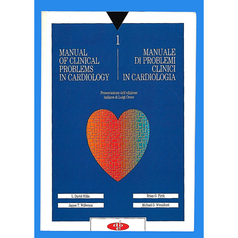 L David Hillis - James T Willerson - Brian G Firth - Michael D Winniford Manuale di Problemi Clinici in Cardiologia Presentazione dell'Edizione Italiana di Luigi Croce Edizione Bilingue Inglese - Italiano Libreria Editrice Internazionale 1990 Copertina morbida in cartoncino pagine 272 ISBN 8885104088 Buone condizioni leggerissimi segni di usura e del tempo