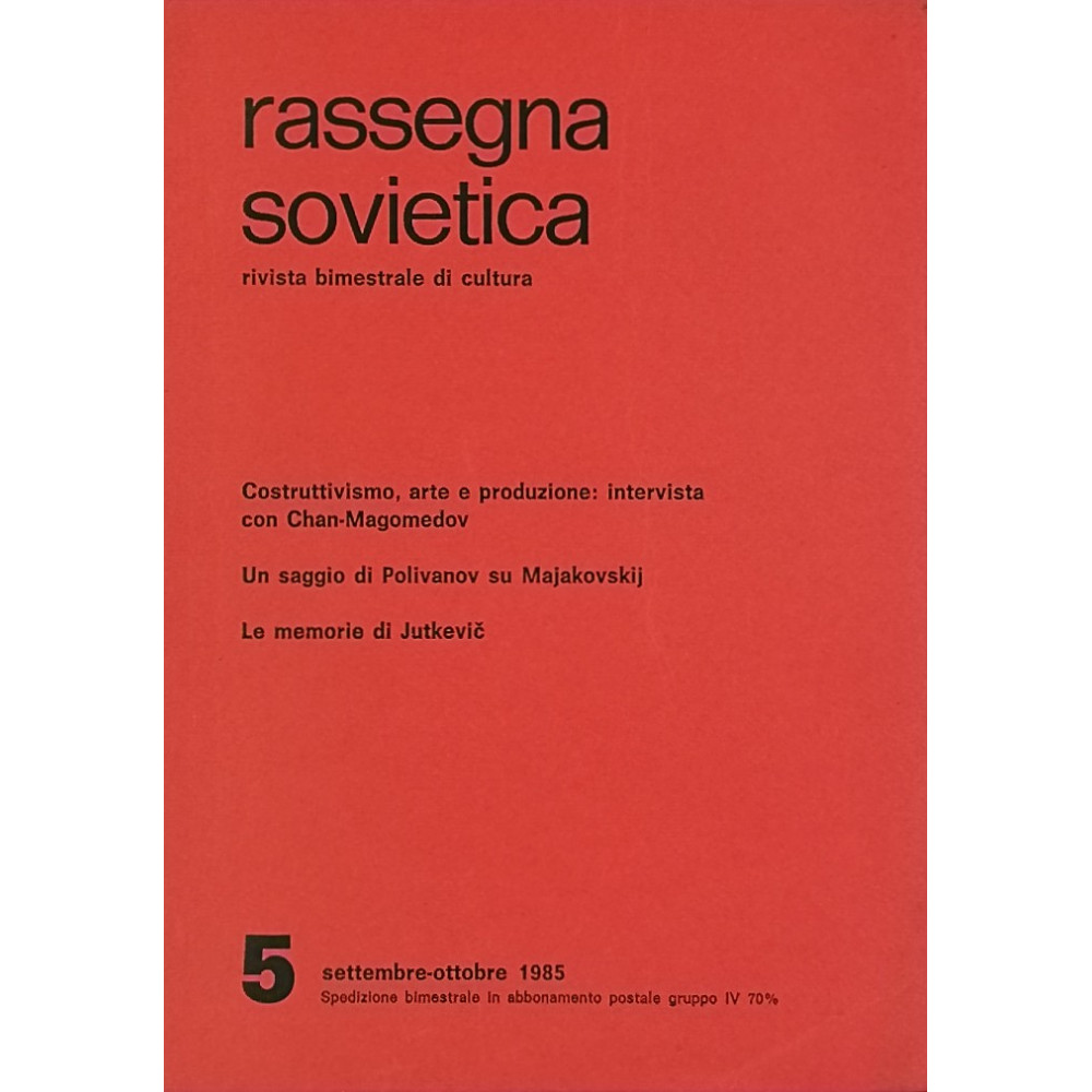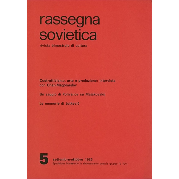 Rassegna Sovietica Rivista Bimestrale di Cultura n 5 settembre-ottobre 1985