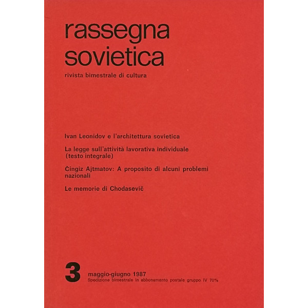 Rassegna Sovietica Rivista Bimestrale di Cultura n 3 maggio-giugno 1987