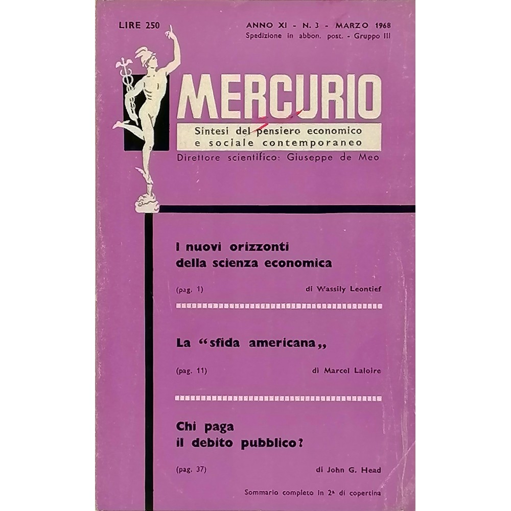 Mercurio Sintesi del Pensiero Economico e Sociale Contemporaneo n 3/1968