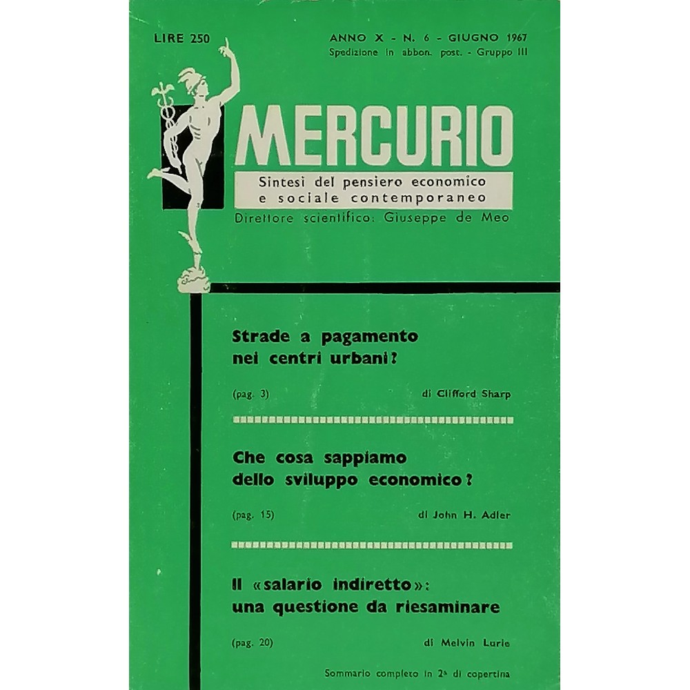 Mercurio Sintesi del Pensiero Economico e Sociale Contemporaneo n 6/1967