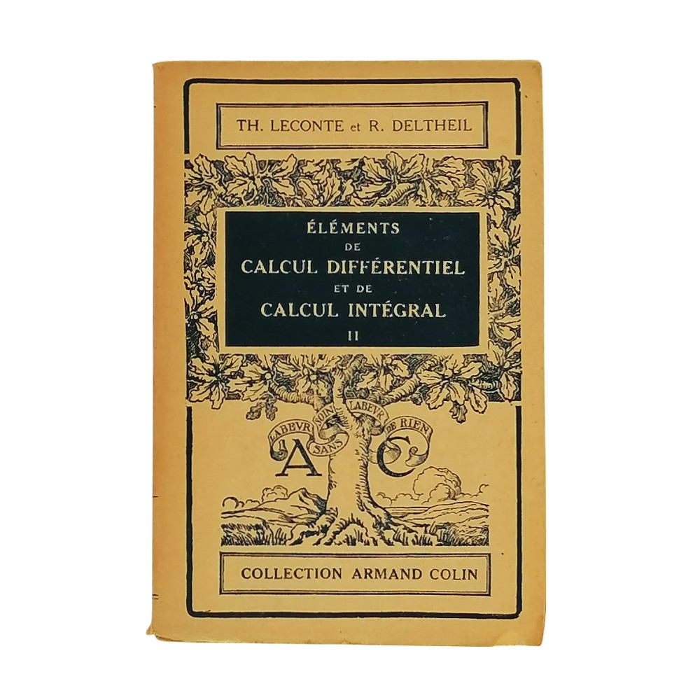 Elementi di calcolo differenziale e integrale, di Th. Leconte e R. Deltheil, Volume II, Armand Colin Publishers, 1949. Brossura, 220 pagine. Buone condizioni generali, lievi segni di usura e del tempo, bordi leggermente ingialliti. Ulteriori informazioni e foto dettagliate disponibili su richiesta.