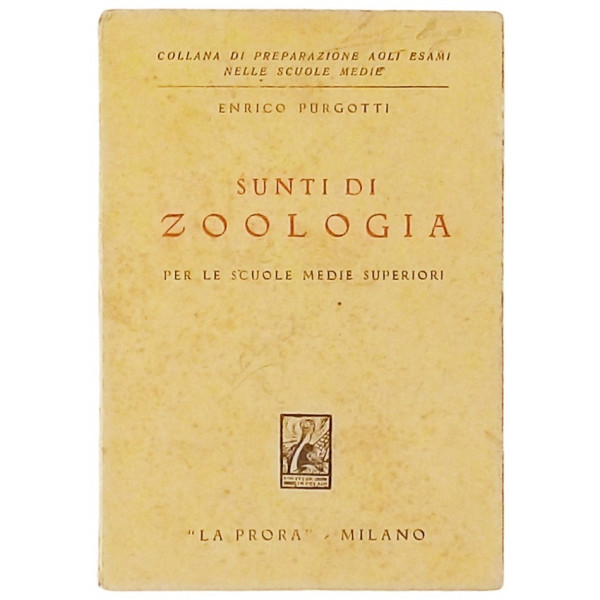 Enrico Purgotti Sunti di Zoologia La Prora 1937 - Copertina morbida in cartoncino pagine 102 Buone condizioni leggeri segni di usura e del tempo