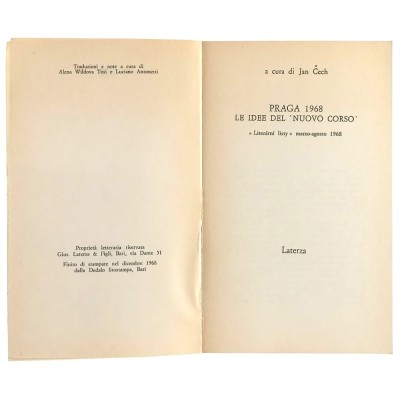 Praga 1968 Le Idee Del Nuovo Corso Jan Čech Editori Laterza 1968