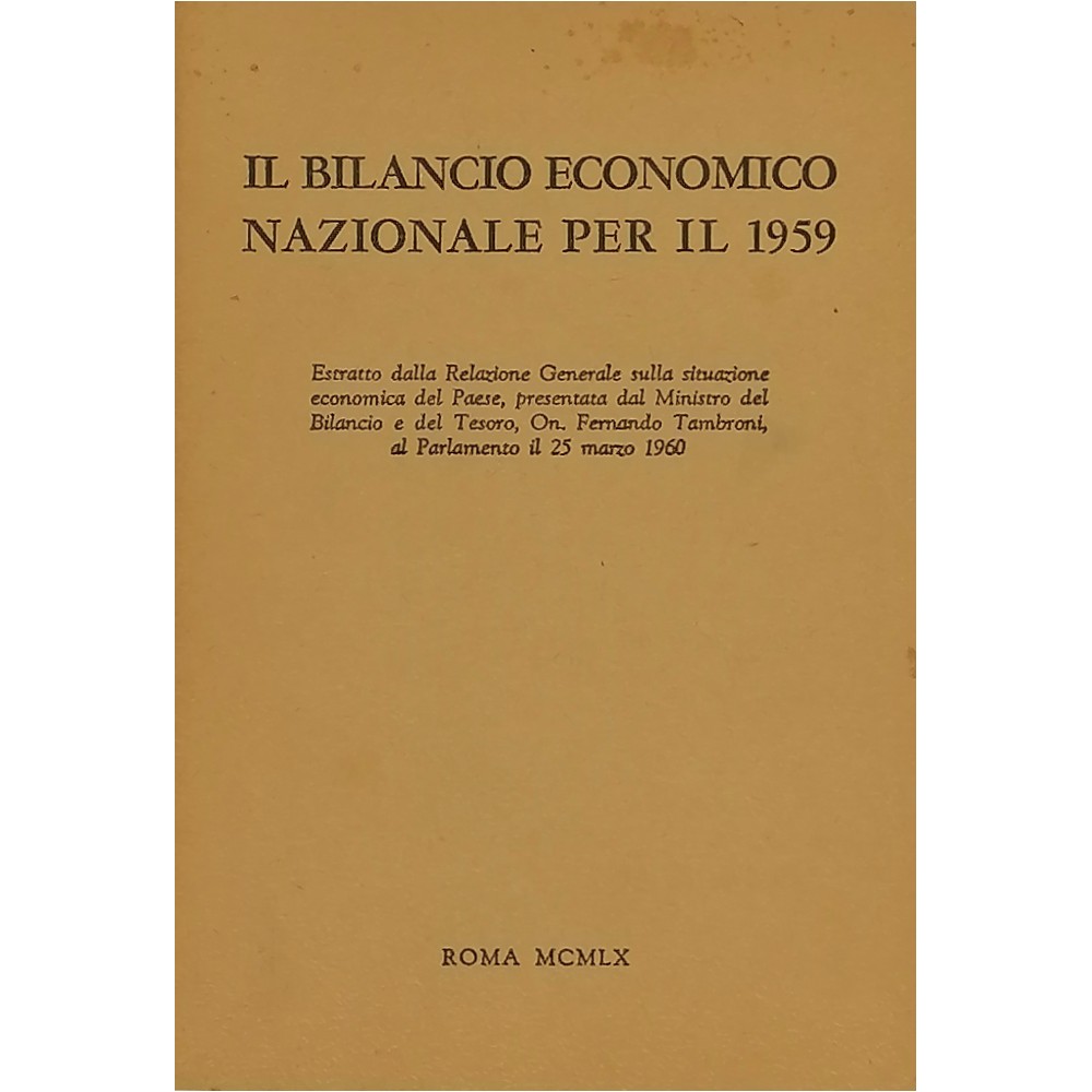 Il Bilancio Economico Nazionale Per Il 1959 On. Fernando Tramboni